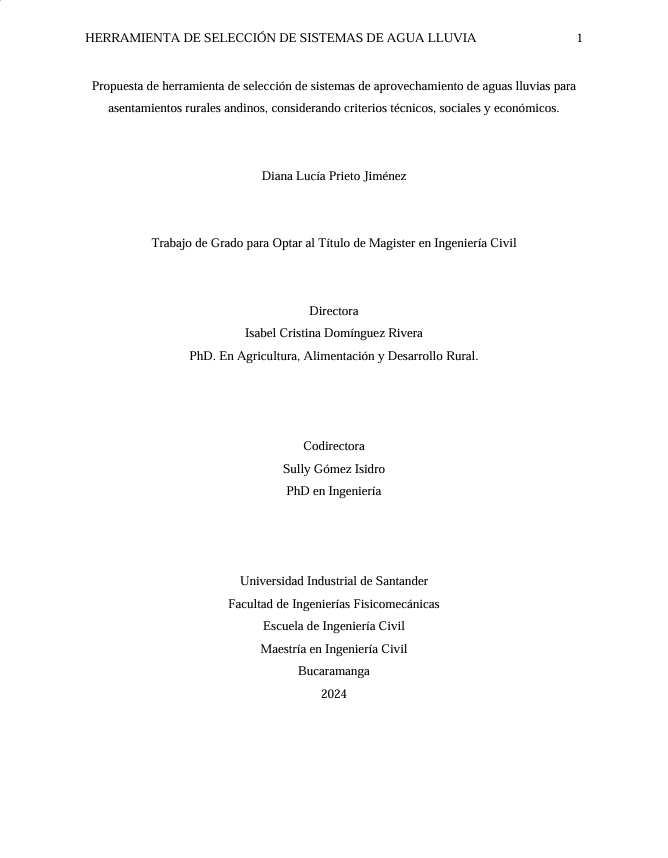 Propuesta de herramienta de selección de sistemas de aprovechamiento de aguas lluvias para asentamientos rurales andinos, considerando criterios técnicos, sociales y económicos